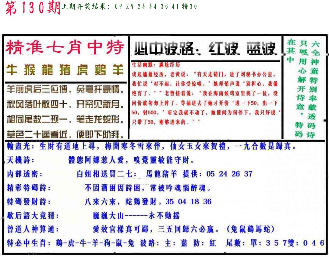 | 0129期:精准单双〖双数〗开:30鼠对 | |