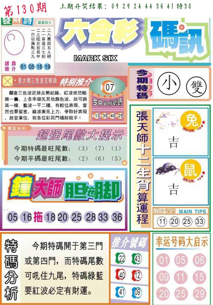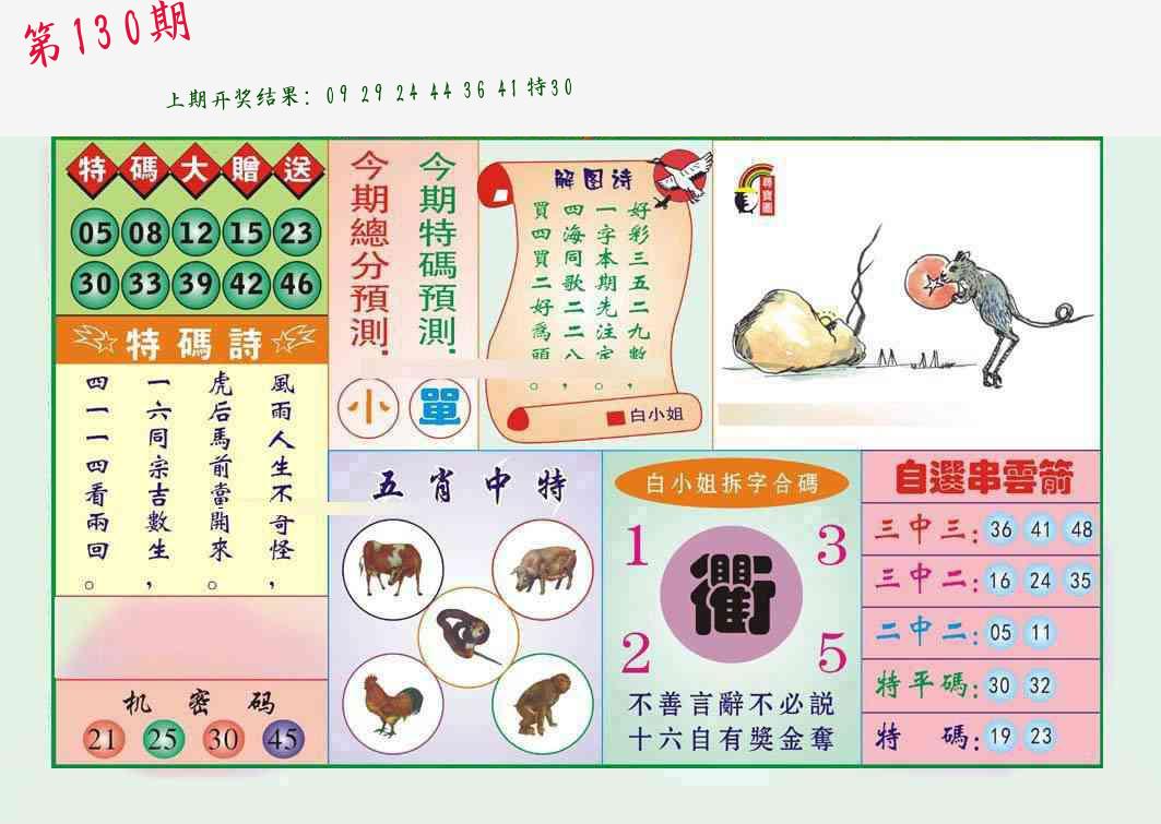 | 0129期:单双四肖八码 开:30鼠错 | |