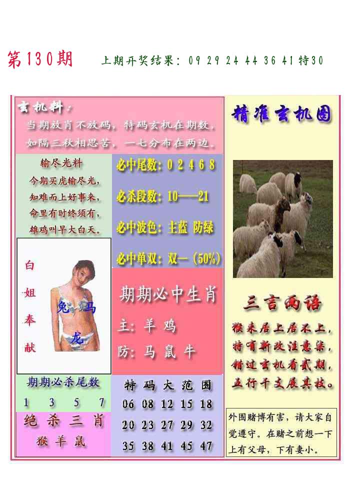 | 七肖 | 羊虎兔鸡猪鼠龙 |